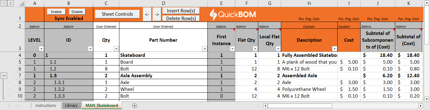 Here’s what the skateboard would look like in QuickBOM.
